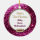 Enfeite de fotograma personalizada de primeira vez no Natal da cerâmica Adorável Bebê. A frente tem um lugar para sua própria foto carregada e o ano, enquanto a parte de trás está pronta para você personalizar com o nome e o ano do bebê também. Faz o presente perfeito para os avós dos novos pais e será um tesouro ano após ano.