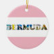 Mostre a todos seu amor pelo país das Bermudas com este Enfeites de natal contendo uma colagem colorida com fotos da praia das Bermudas e cenas do oceano. Você pode alterar a cor de fundo do ornamento para ajustado sua preferência.