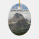 Um ornamento em estilo oval com uma foto da montanha cênica de Montana e Glacier National Park. Imagem impressa apenas num lado. Selecione o seu estilo de ornamento. Faz um viagem de souvenir excelente!
