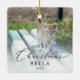 A primeira peça de cerâmica de gato de Natal deste delicado é a decoração perfeita e moderna de árvores de Natal. A design romântica minimalista apresenta uma magnífica e elegante tipografia negra com um aspecto simples e limpo. Este ornamento de manutenção diz "primeiro Natal". Personalize seu ornamento de dois lados com uma foto do seu gatinho, o nome do seu gatinho e o ano.