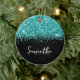 Ornamento De Cerâmica Foto do Teal Glitter e do Nome do Glam Negro