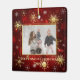 Dourados flocos de neve em um belo fundo vermelho. Sazonal. Adicione suas fotos da família favorita para personalizar. Mude os nomes e o ano, o seu nome e que belo presente de ornamento de feriado é este. Elegante. Tão simples, mas chique.