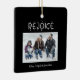 A fotografia personalizada de um ornamento cerâmico de Natal representa uma fotografia personalizada com uma simples cena de natividade branca no verso e uma oração, que pode ser personalizada para os detalhes de sua escolha.