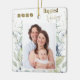 Personalize este lindo ornamento de férias com sua própria fotografia e ano! Design com ouro faux foil, com a frase "Feriados mais felizes" e uma linda aquarela verde de inverno. Design na frente e atrás. Parte de nossa coleção "Feriados mais felizes do inverno" com uma variedade de produtos coordenadores disponíveis.