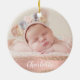 Este adorno elegante é uma forma excelente de mostrar sua foto favorita da nova menina da família. Substitua facilmente a foto da amostra pela sua, e personalize-a adicionando o nome do bebê em um script branco de escrita manual sobre pinceladas de cor-de-rosa pincelada e pinceladas de folha de ouro falsas. E presente ideal para a nova mãe ou avó.