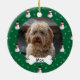 Personalize este design de ornamento festivo com uma foto do seu cachorro com o primeiro nome na placa do monograma do cão. Um presente de excelente para amantes de cachorros, para celebrar o primeiro Natal de um filhote ou para estimar a memória de um querido cachorro da família.