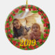 Ornamento De Cerâmica Foto personalizada de Happy Holly Berry Wreath