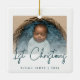 Celebrar o primeiro Natal do bebê com este moderno ornamento minimalista de manutenção de fotos. O texto azul teal lê "Natal de 1rua" no roteiro de moda. Substitua facilmente a imagem de exemplo pela sua foto favorita e adicione o nome do bebê e o ano abaixo. Uma tela de gradiente branco ajuda a fazer o pop de sobreposição de texto.