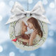 Ornamento De Cerâmica Foto Simples Red Cardinal Greenery Wreath