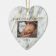 Ornamento único, clássico, fofo e decorativo com lindos padrões marmoros de cinza azul. Com opção para personalizar ou personalizar com nome, texto e foto de sua escolha. Esta exibição de fotos faz um excelente presente de manutenção para avós ou novos pais!
