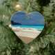 Um ornamento com uma bela fotografia que apresenta um mar azul de turquesa e uma praia arenosa com ondas de surf de espuma.