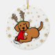 Fox Red Labrador e Papais noeis Ornamento de Cartoon de Natal para amantes de cães! Um desenho animado e fofo do Labrador Retriever criado por Naomi Ochiai do Japão. Dons de diversão de excelente para amantes de cães que amam cães do Labrador Retriever! Fox Red Labrador está mascando o Chapéu Papai noel. Engraçada e baleada cena de Natal para as férias. Você pode personalizar texto e muito mais!