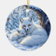 Wishing someone a Merry Christmas with this sweet winter foxes themed personalized ornament. Add your own message on the back. Front has a sweet illustration of two white foxes, a mama and baby cuddling under a tree in the snow.