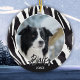 Borda Collie Padrões De Pele Nome Foto Do Ornamento Cerâmico De Natal. O fundo é o padrão de pelo de collie de borda branca e preta. Personalize o ornamento com a foto, o nome e o ano de nascimento do seu cão. Uma adorável guarda de férias para um dono de collie de fronteira.