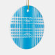 Frost ornaments. Frost is an abstract design created by Anna M. Asbury and consists of a blue and white background with lines running vertically and horizontally. Three Chalc Runes rest in the center.