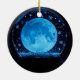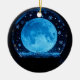 Full blue moon in a snow globe with snowflakes. A mystical magical Christmas or Yule ornament.