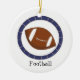 Um legal design para um fã de futebol. Um futebol de couro num círculo azul escuro acentuado por linhas brancas. O ditado pode ser mudado como desejado.