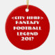 Este ornamento é perfeito para qualquer um que seja considerado uma lenda de futebol de fantasia, tudo que você tem que fazer é adicionar seu nome de cidade ou cidade e o ano. Isto é um presente de Natal excelente ou um guardião comemorativo para uma estação excelente de futebol de fantasia.