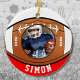 Celebre os triunfos atléticos do seu filho na liga júnior, na faculdade ou no futebol segundo grau com esta Ornament de Cores da Equipe Branca de Futebol. Personalize com a foto, o nome e o ano do seu filho. Uma ideia de presente de excelente para vovó e vovô.