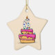 Ornamento De Cerâmica Garota 6 de Aniversário, 6 no Bolo Rosa Doce