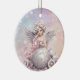 Aqui está um belo e inspirador Enfeites de natal que faz um belo presente para tantos! A frente apresenta uma imagem bonito de uma anjo alado prateado segurando uma lâmpada decorativa de prata. Uma fita festiva pálida está conectada ao topo. A imagem é colocada sobre um fundo cor-de-rosa, lavanda e bokeh azul. A parte traseira do ornamento tem o mesmo plano de fundo com vários campos de texto para personalização. Faça-o dizer o que quiser!