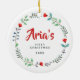 Simples Menina Primeiro Natal Vermelha Frita Cerâmica Ornament. Personalize com suas informações personalizadas tanto na frente quanto na parte traseira.