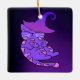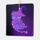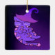 Ornamento De Cerâmica Gatinho roxo e bonito com chapéu de bruxa