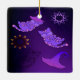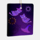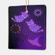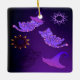 Ornamento De Cerâmica Gatinhos Roxos com Chapéus e Estrelas de Bruxas