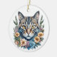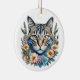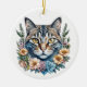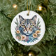 Ornamento De Cerâmica Gato de Aquarela Cuta com Flores de Natal