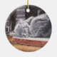 Este ornamento cerâmico do gato que dorme apresenta a obra de arte original, "The Bookmark", que mostra um gato-cinza que dorme em um livro antigo em uma livraria ou biblioteca escura. Este ornamento é impresso em ambos os lados e faz um presente de excelente para você mesmo, ou para os amantes do gato em sua vida. Trabalho de arte Copyright: Dominic A. White.