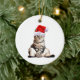 Ornamento De Cerâmica Gato de Natal com Papai Noel