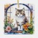 Ornamento De Cerâmica Gato distribuído na janela de flores personalizada