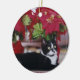 O ornamento bonito do gatinho faz um grande presente! As poinsétias são de seda.