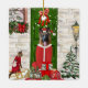 German shepherd Cachorro de Natal sentado do lado de fora da casa decorada com coroa de Natal, a árvore de Natal é uma ideia perfeita de presente de Natal para amantes de cachorros.