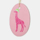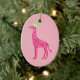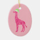 Ornamento De Cerâmica Girafa rosa num chapéu verde de Santa
