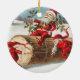 Ornamento De Cerâmica Gnomes dragging a cut tree trunk through the snow