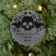 Enfeite romântico bonito, com crânio de vampiro preto, com presas com um toque de espirais femininas e um coração em cima contra cinza moída no chão. O texto diz "Juntos para sempre" e há espaço para dois nomes. Basta trocar seus nomes pelos que estão na caixa de texto. Isso seria um doce presente para aquele que você ama.