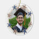 Um anúncio de graduação de listras brancas azuis com Marinho de fotografia náutica moderno, apresentando um quadro sobre sua escolha de foto. O backside contém mais detalhes sobre o seu formando.
