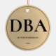Um ornamento para um formando DBA com um tom de ouro (não folha) e esquema de cor preta. Mostra o grau, o nome e o ano. Simplesmente personalize este ornamento, adicione-o ao seu carrinho, e mantenha-se fiel a esta grande conquista. Graduação Dourada de DBA Elegantemente Simples Design de Natal para Ornamento Cerâmico | ©Melissa Patton - Designer