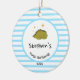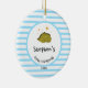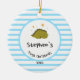 Ornamento De Cerâmica Green Baby Dino | Primeiro Natal, Bebê Blue Stripe