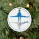 Seu ginasta favorito vai adorar este Enfeites de natal, que é personalizado apenas para ela. Um lado tem um ginasta azul-silhueta com um reflexo prateado sobre fundo branco. O nome dela está escrito em azul correspondente na parte inferior direita. A parte traseira do ornamento também é branca, com campos de texto em azul correspondente para você personalizar. Um belo presente de manutenção!