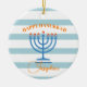 Ornamento De Cerâmica Hanukkah Menorah Foto Azul Laranja