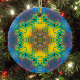 Ornamento De Cerâmica Hex Mandala Amarelo Azul e Rosa