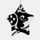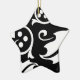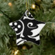 Star ornament is shown in black and white with a holly print.