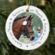 Honre seu melhor amigo com um ornamento personalizado de memorial de fotos. Esta única manutenção do ornamento memorial de animais de estimação é o presente perfeito para você, família ou amigos para prestar tributo ao seu amado. Esperamos que seu ornamento memorial traga paz, alegria e memórias felizes. Cite "Para sempre em nossos Corações". Personalize com fotos favoritas de cães de estimação ou gatos e nome. O pedido é de dois lados, você pode fazer duas fotos favoritas, uma em cada lado. Personalize o nome na frente e as datas na parte de trás. Para sempre em nosso Memorial de Perda de Cavalo. COPYRIGHT © 2020 Judy Burrows, Black Dog Art - Todos Os Direitos Reservados. Ornamento Cerâmico Memorial Horse Pet