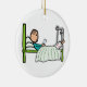 O design do Hospital Bed mostra o adesivo lendo um cartão enquanto deitado na cama. Tem uma perna quebrada em um molde assinado, erguido por equipamento especial. O paciente tem travesseiros confortáveis e uma atitude relaxada e resignada com uma estadia no hospital. Vai logo!