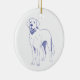 Klassisches Design in Blau-Weiß. Blaue Linienzeichnung der Hunderasse Labrador auf weißem Untergrund.