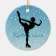 Ice Skater Ornament em fundo de turquesa com estrelas brancas. Todo texto personalizável, frente e verso!