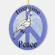 Uma pomba branca num sinal de paz azul roxo cobrir o planeta Terra. Imagine a Paz.