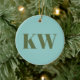 Adicione um toque de sofisticação ao seu decoro de férias com este ornamento cerâmico personalizado, com iniciais em branco de monograma em uma paleta azul e verde elegante. Perfeito para comemorar os feriados no estilo, este ornamento pode ser personalizado com suas iniciais para criar uma manutenção verdadeiramente única e eterno. Quer você esteja decorando sua árvore ou a dando a alguém especial, a design moderna e as cores vibrantes fazem deste ornamento um complemento para qualquer cenário festivo.